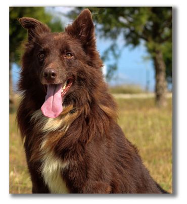 Bear is intense when working. Not much distracts him… even, ‘that’ll do!!!!!’ He is strong on either end. He is a taller Aussie with a long flowing stride to cover ground. Great long working pasture type dog. He has learned to work calmer in the pens and hold on the head. I’ve been told because of his pricked ears and muzzle length he looks a little like a wolf. He can sure move like one. He has a nice sense of group and classic low heel.
