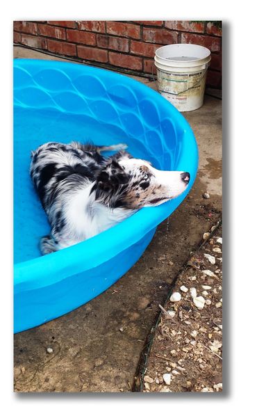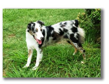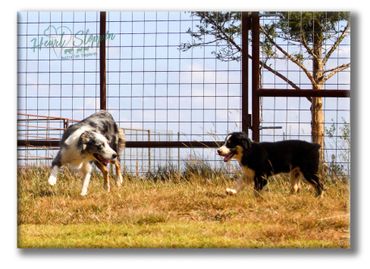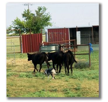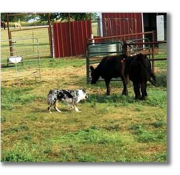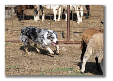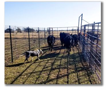 Daisy is a kind worker. Very natural with young stock. She is stronger on the heel of goats, sheep and cattle. Not as strong on the head when challenged. She will cut and hit a heel. Love living with her. She is one of our easy going house dogs. Always has a wiggle butt and toy in mouth when not working.