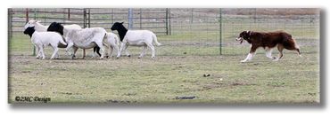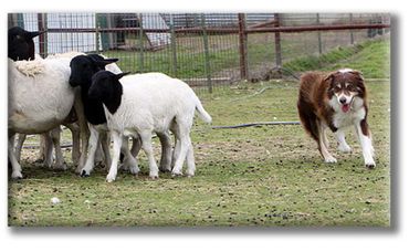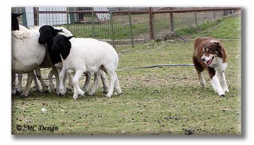 Hondo is the only son of Ted that I own. He prefers to heel cattle - is a very strong minded dog. It has taken a while to get he and I on the same team. He was sold as a youngster. I had been able to work him and just loved it! Hondo has a nice amount of thinking instinct. He can be pushy with cattle and then very gentle with a day old lamb. His trialing career has just started at age 7. We had some 'communication' problems. =-) I think when you see him low heel or turn heads on cattle with ease - you will be pleased, that he is an Aussie.