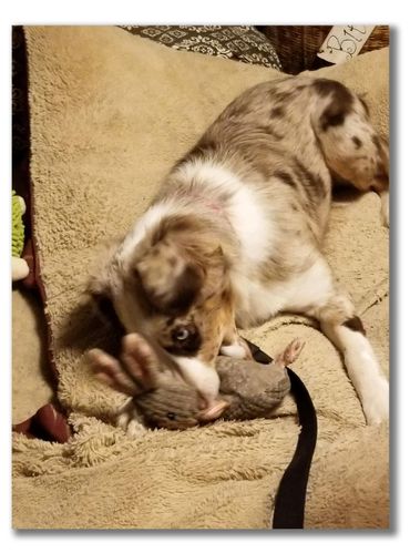 I leased Mona and did a co-breeding to get Stella. I’m enjoying her intensity on stock. So far she is showing strong heeling tendencies. Off stock she is a toy playing silly girl. Love her enthusiasm for life. She wiggles her nub almost nonstop. Working or non working.