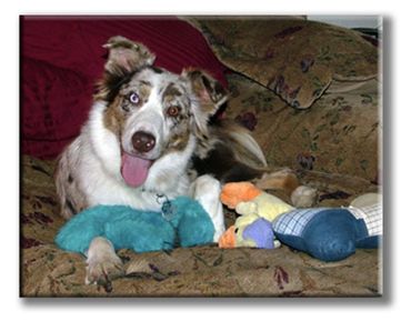 A few days after Sweetie was born, I picked her up and with eyes still closed she growled at me. I decided immediately to keep this pup. Not knowing what her personality would be as she matured. She became known as grumpy, then Smudge, then Queenie and eventually we stayed with Sweetie. We found, she was all talk. I do think she will be protective of her place and things she considers hers. The few times she has been on sheep, I've been real proud of what she has done. No Fear, no reserved caution. Easily pushes out and comes in just as easy to hit something that is needing it. Her athletic ability is a dog that I will have to keep up with, she leaps a lot off stock, and keeping her feet on the ground isn't easy. She will walk on her back legs for treats and snuggles well too. I'm looking forward to growing up with her.